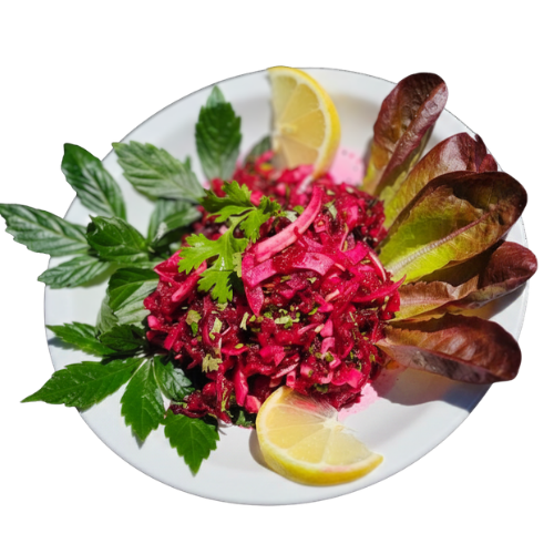 - 1 červená řepa (jemně nastrouhaná)